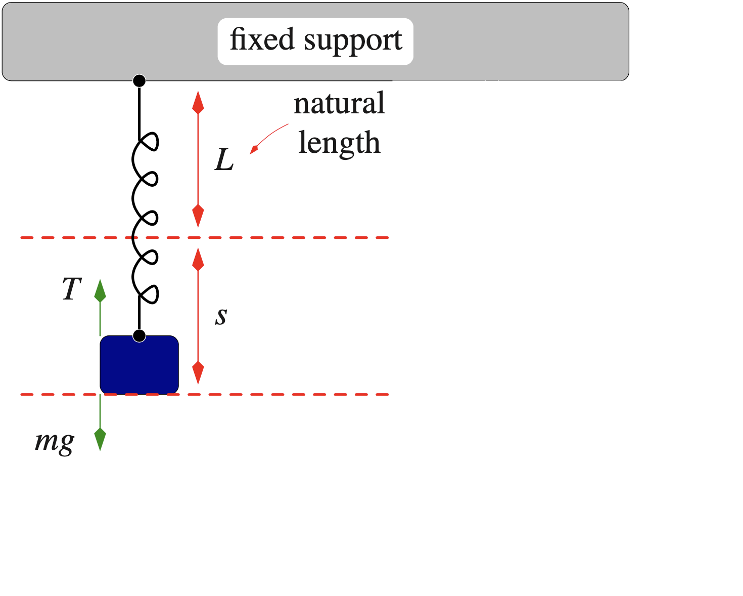 A spring of (natural) length $L$ is stretched a distance $s$ by a weight with mass $m$.