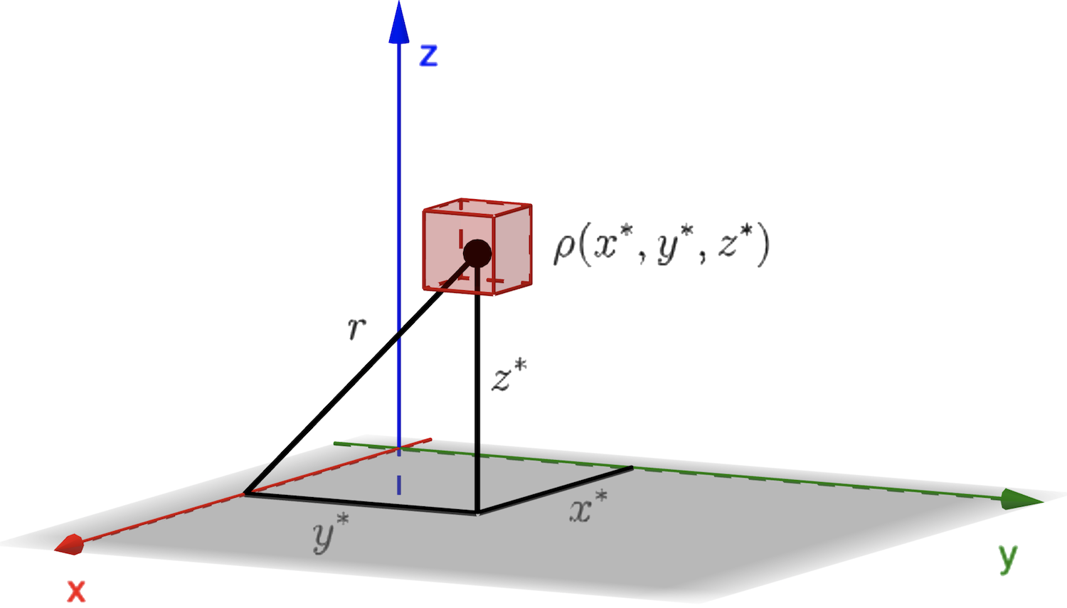 $\displaystyle \Delta m \times r^2$ $\displaystyle = \rho(x^*,y^*,z^*) \times \Delta V\times \left(\left(y^*\right)^2+\left(z^*\right)^2\right) $