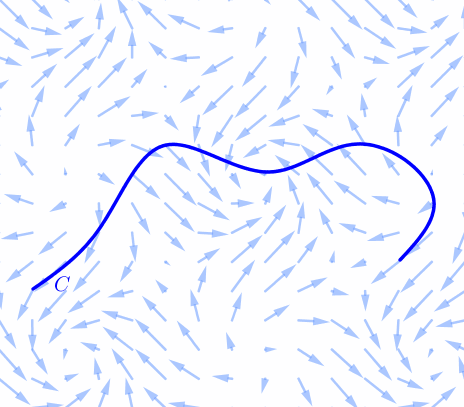 | $\displaystyle = \int_C \F(\r) \pd d\r $ $\displaystyle = \int_C F_1(x,y)~dx+F_2(x,y)~dy.$ |