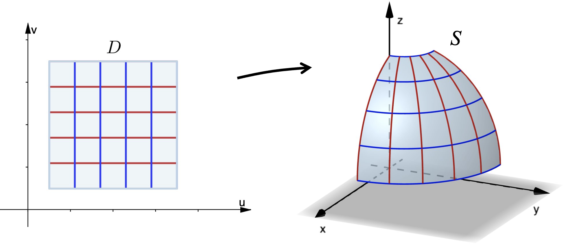 where we assume for simplicity that the parameter domain is a rectangle in the $uv$-plane.