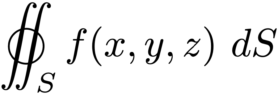 For example, if a thin sheet has the shape of a surface $S$ and the mass density at the point $(x, y, z)$ is $\rho(x, y, z),$ then the mass of the sheet is given by a surface integral: \[ \text{mass of sheet} = \iint_D \rho (x,y,z)~dS. \]
