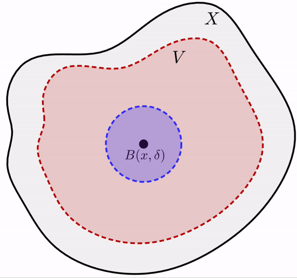 if for every $x \in V$, there exists a $\delta \gt 0$ such that