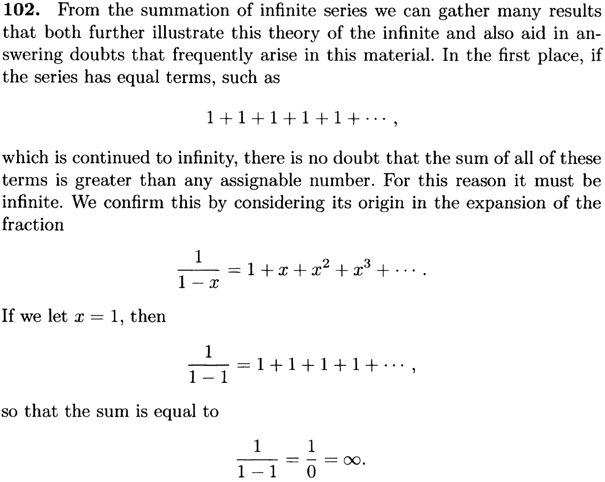 111. These inconveniences and apparent contradictions can be avoided if we give the word sum [of an infinite series] a meaning different from the usual. 🤔 |