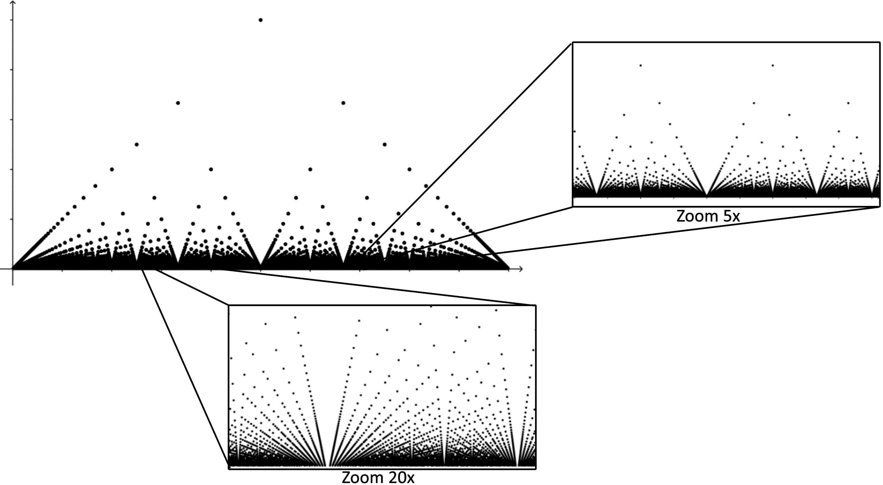 Thus, to see that Thomae's function is Riemann integrable, we need to show that, given $\epsilon \gt 0$, we can find a partition $P$ with respect to which \[U ( P, f ) \lt \epsilon.\]